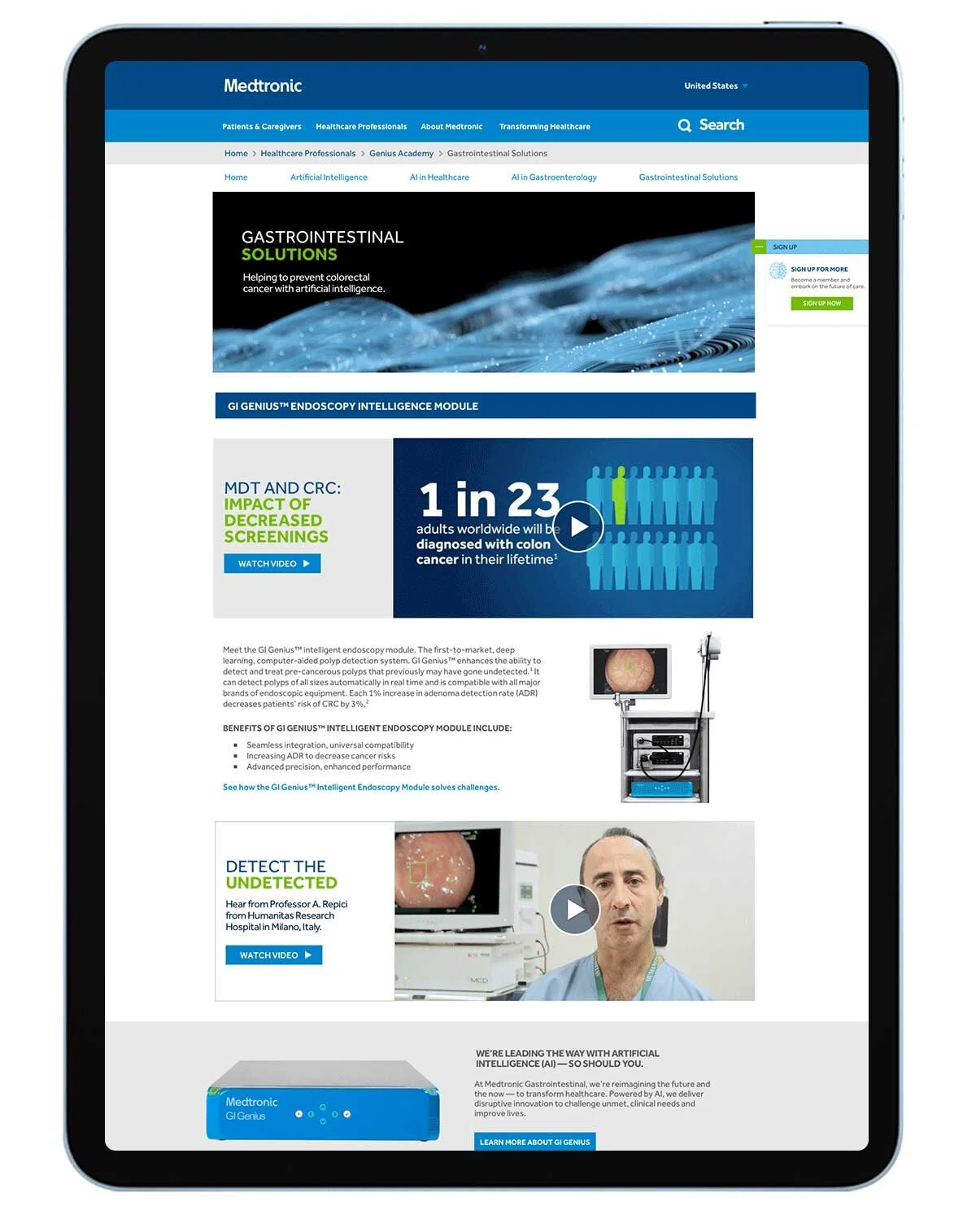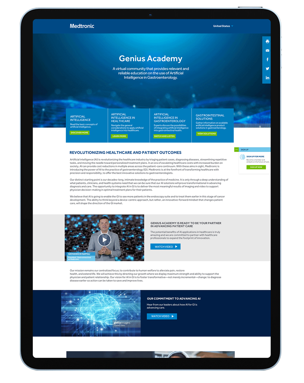 Medtronic needed a site for its new education platform, Genius Academy. I worked with Grayduck Health Marketing on the strategy and they provided a sitemap. I was tasked to design the user experience & design interface for this brand-new site based on my knowledge of the brand and knowledge of the medtronic.com platform.