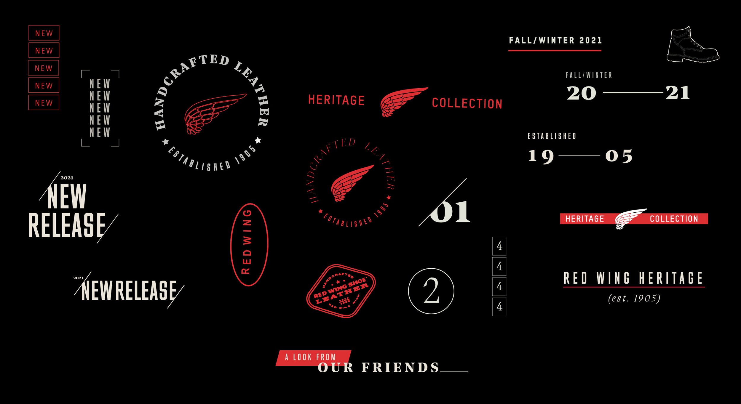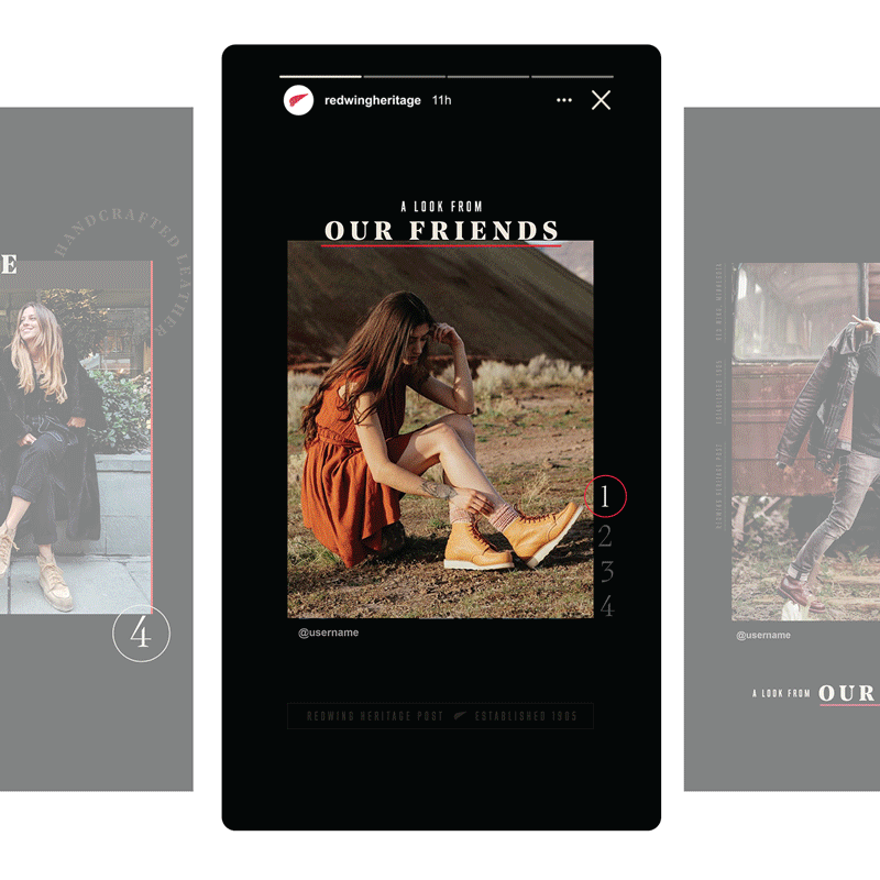 Redwing Shoes was in need of social story template sets that were versatile enough to accommodate the wide range of content this international brand would need. I began the project with an iconography design exercise and ended with three template sets that